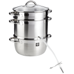 Ebenso wichtig ist es, darauf zu achten, dass alle Einzelteile nahtlos zusammenpassen, so dass während des Entsaftens weder Dampf noch Fruchtsaft entweichen kann. Dampfentsafter sind in verschiedenen Größen erhältlich und man sollte das Volumen des Geräts entsprechend der Menge von Obst oder Gemüse wählen, dass man zu entsaften gedenkt.